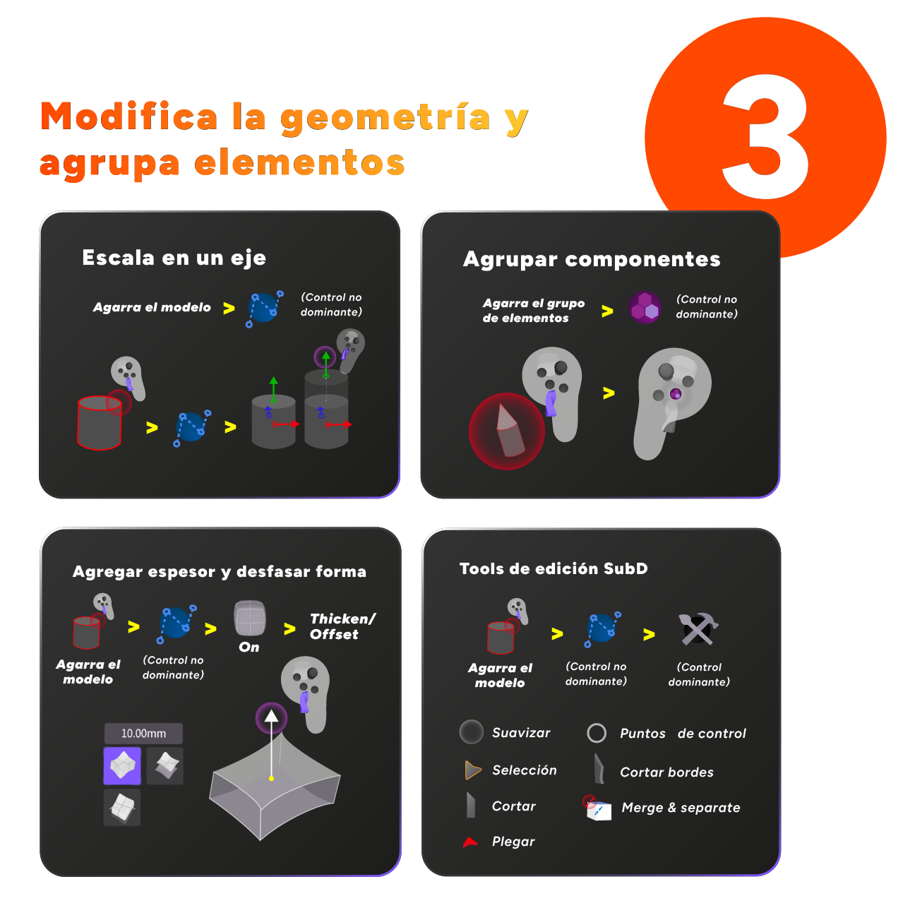 Escalar en un eje, Agrupar, Espesor, SubD