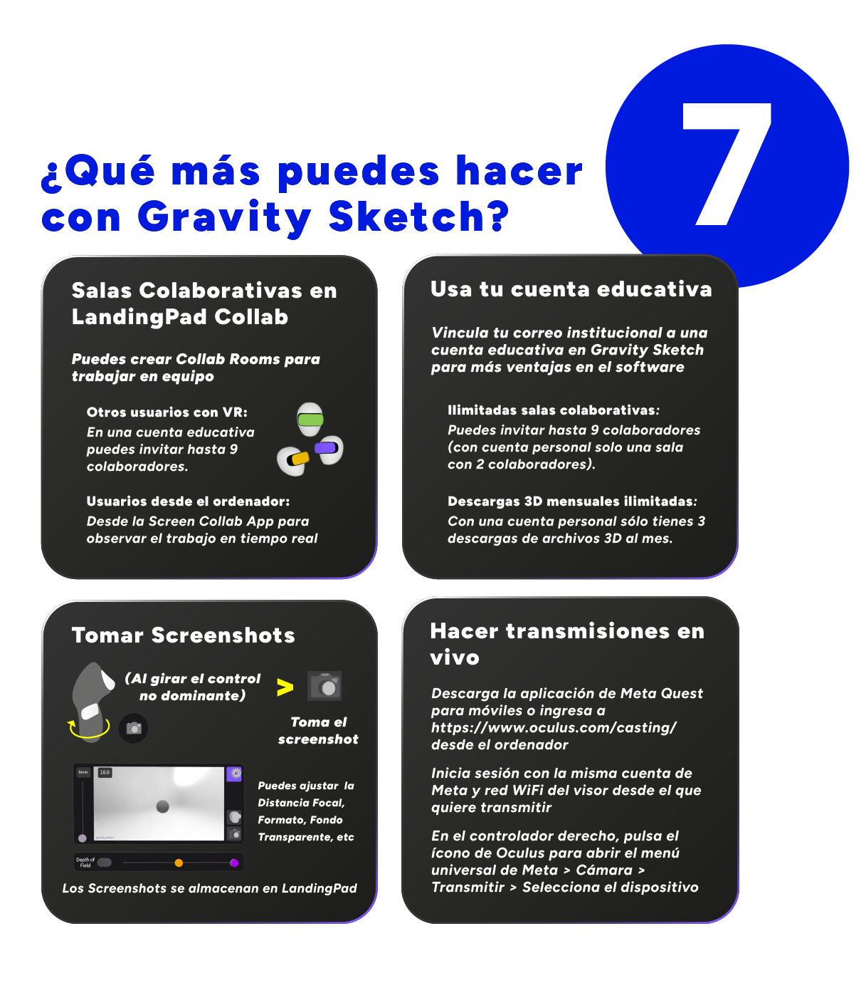 - Crea tu cuenta en LandingPad: Crea una cuenta educativa en LandingPad para almacenar archivos de referencia, modelos creados en Gravity Sketch y colaborar con otros usuarios en salas LandingPad Collab.